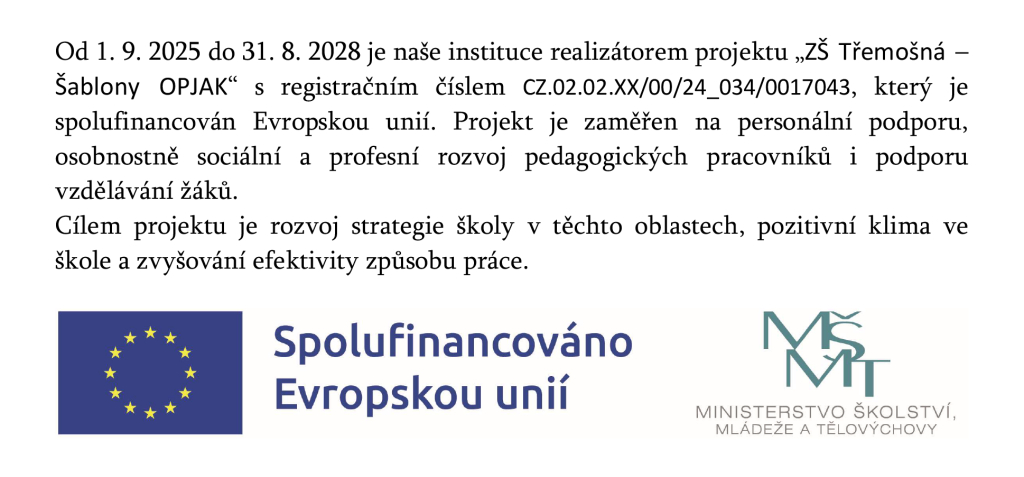 Ve středu 11. 2. 2026 opět proběhlo školní kolo recitační soutěže. Žáci 3. – 5. ročníku si vybírali z velkého množství básniček, které jim nabídly třídní učitelky nebo si mohli vybrat ze své knížky nebo z internetu a pečlivě se připravovali. Pět nejlepších recitátorů z každé třídy předvedlo...