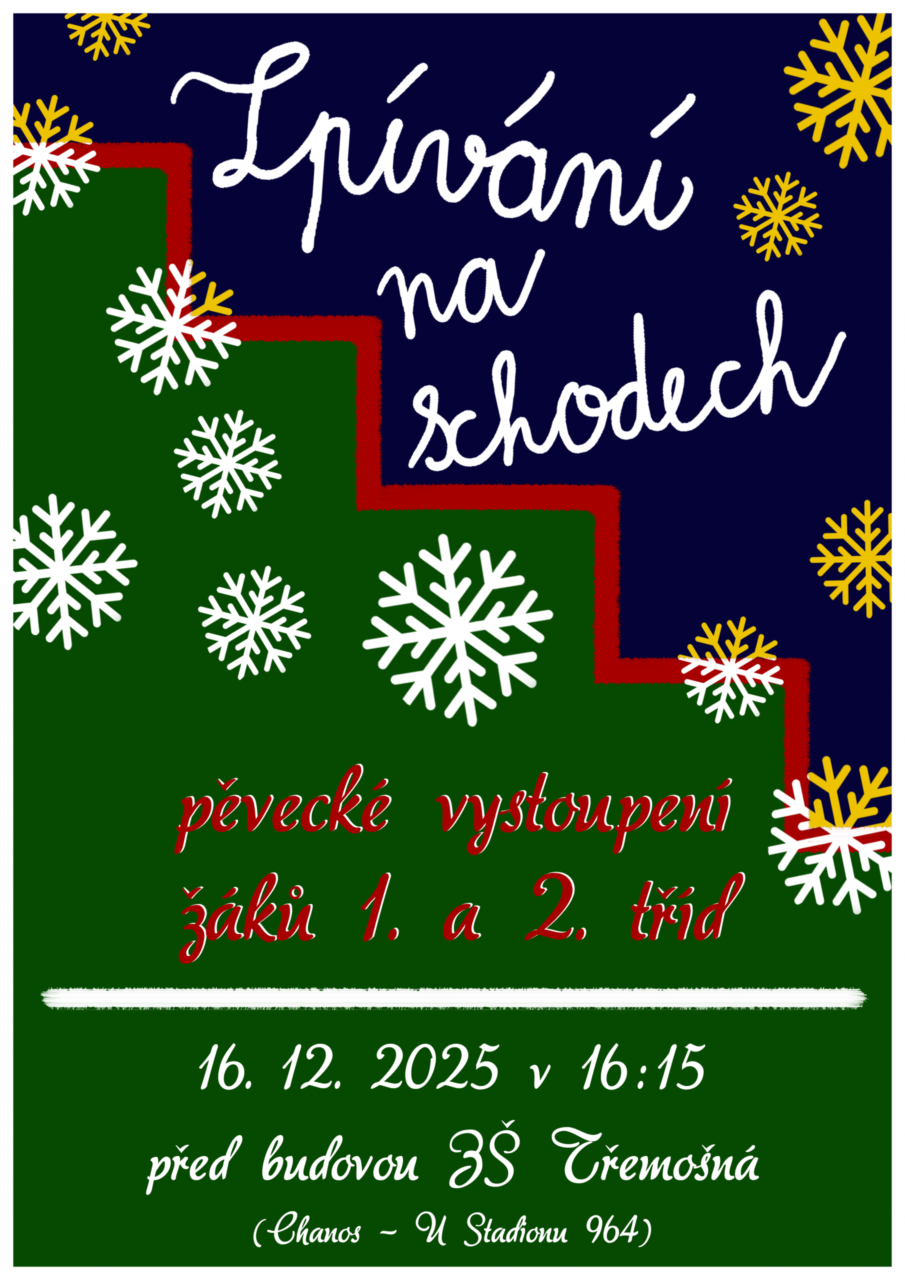 srdečně Vás zveme na každoroční vánoční pěvecké vystoupení žáků 1. a 2. tříd.