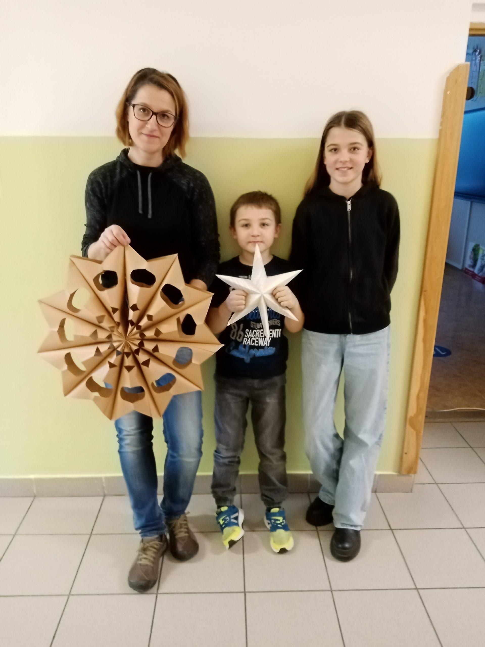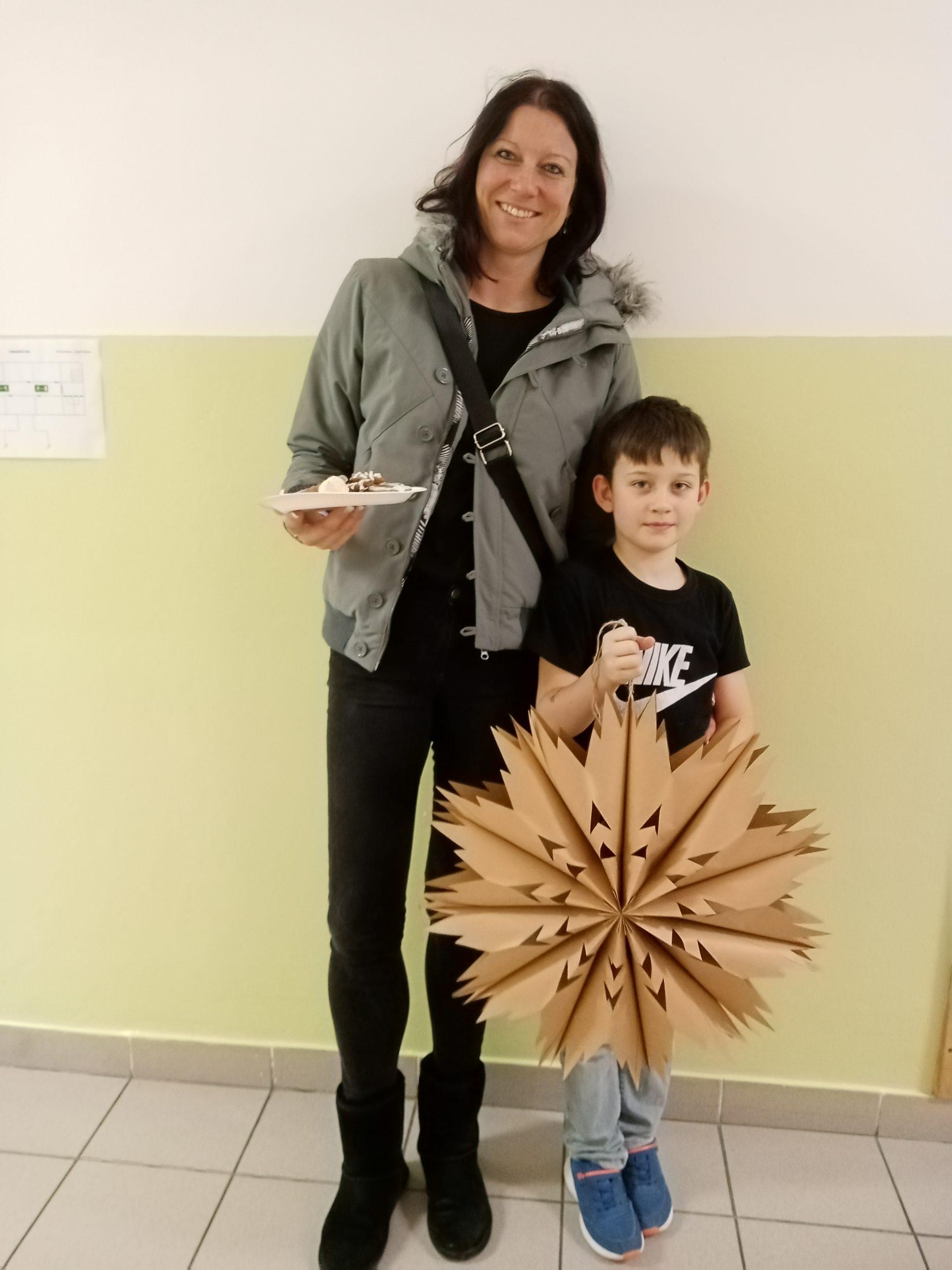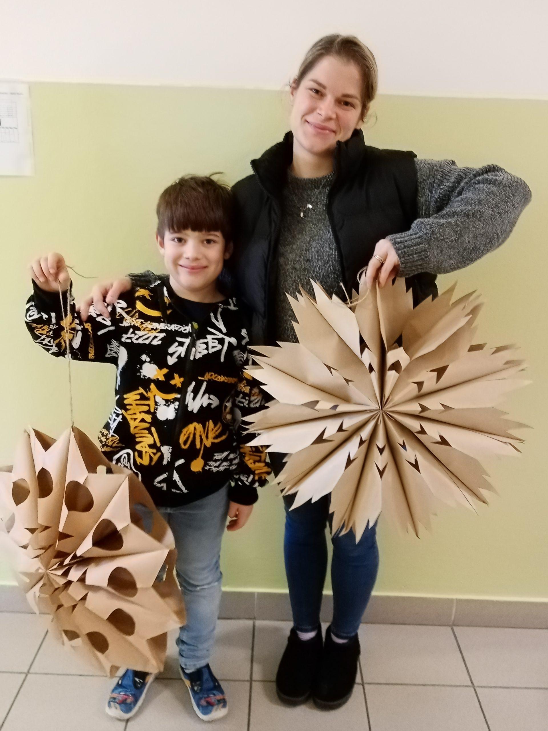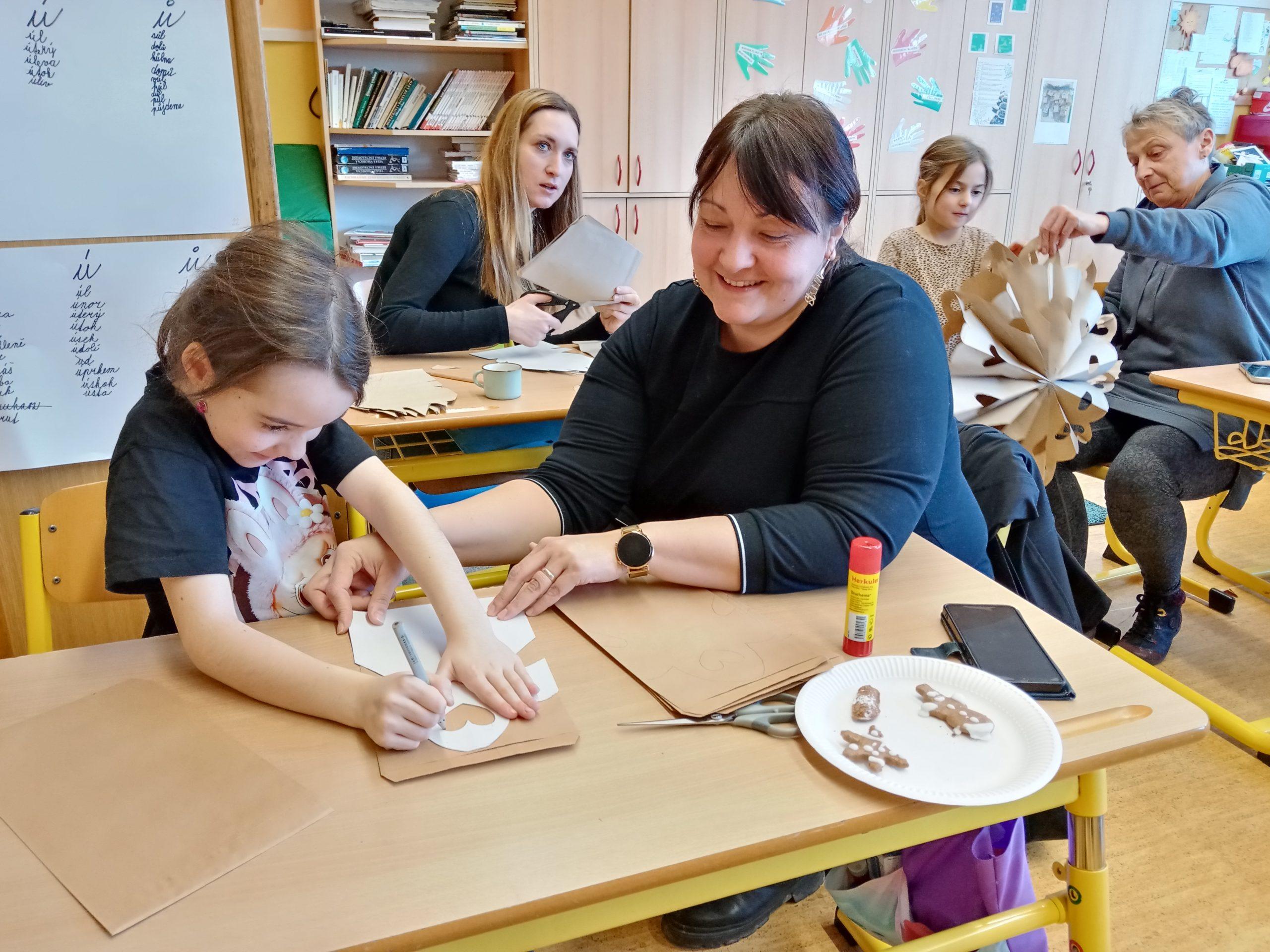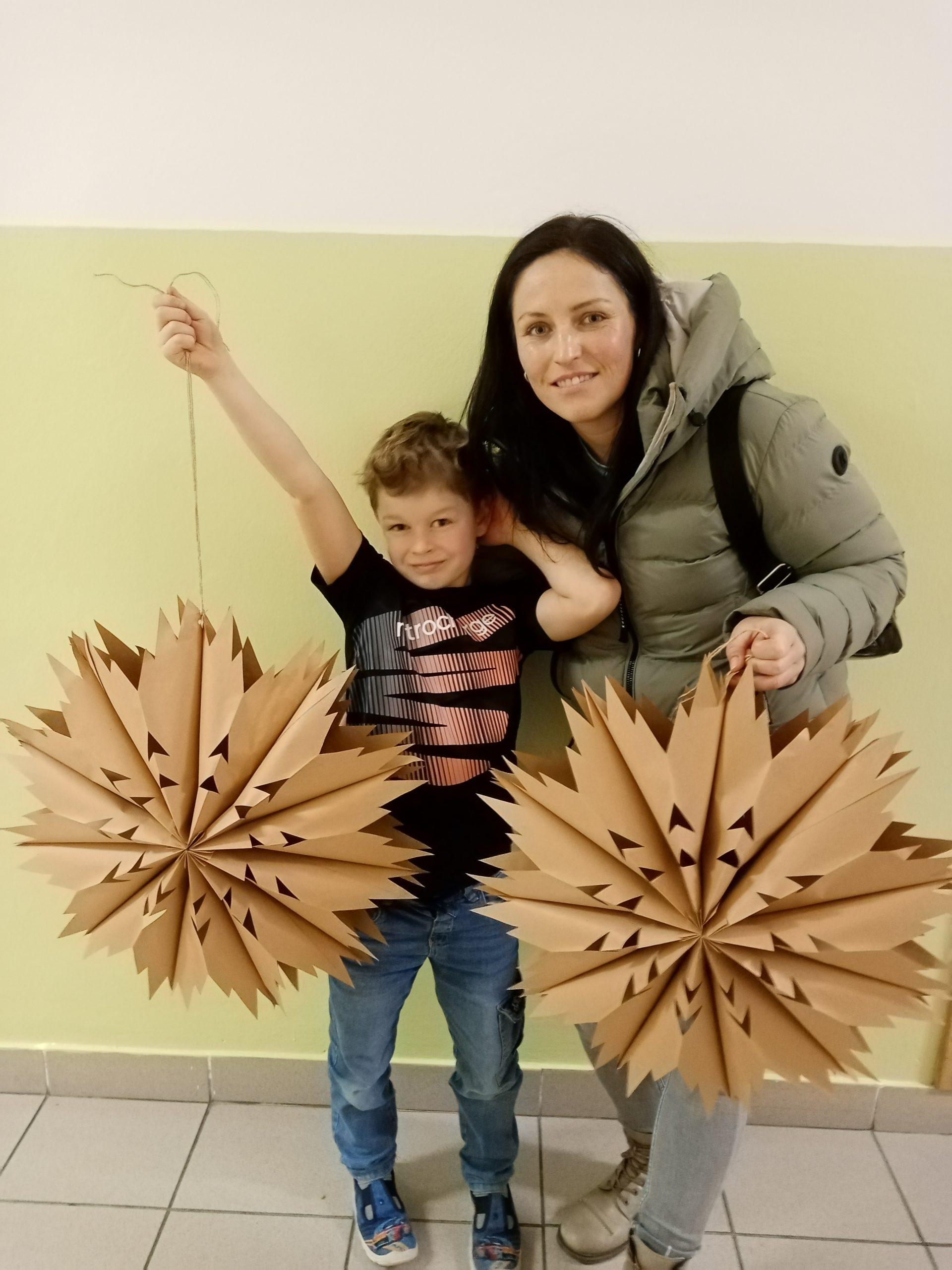 Děti společně se svými rodiči pilně stříhaly, skládaly a lepily a pod jejich šikovnýma rukama vznikaly nádherné vánoční hvězdy z papírových sáčků.