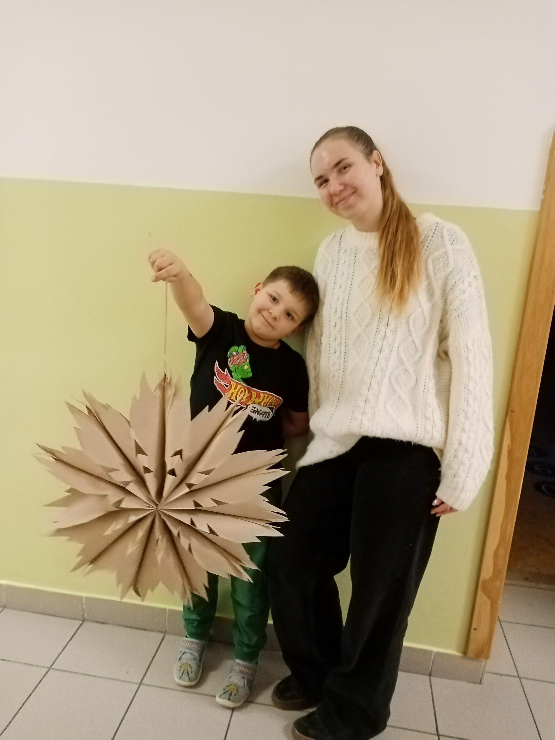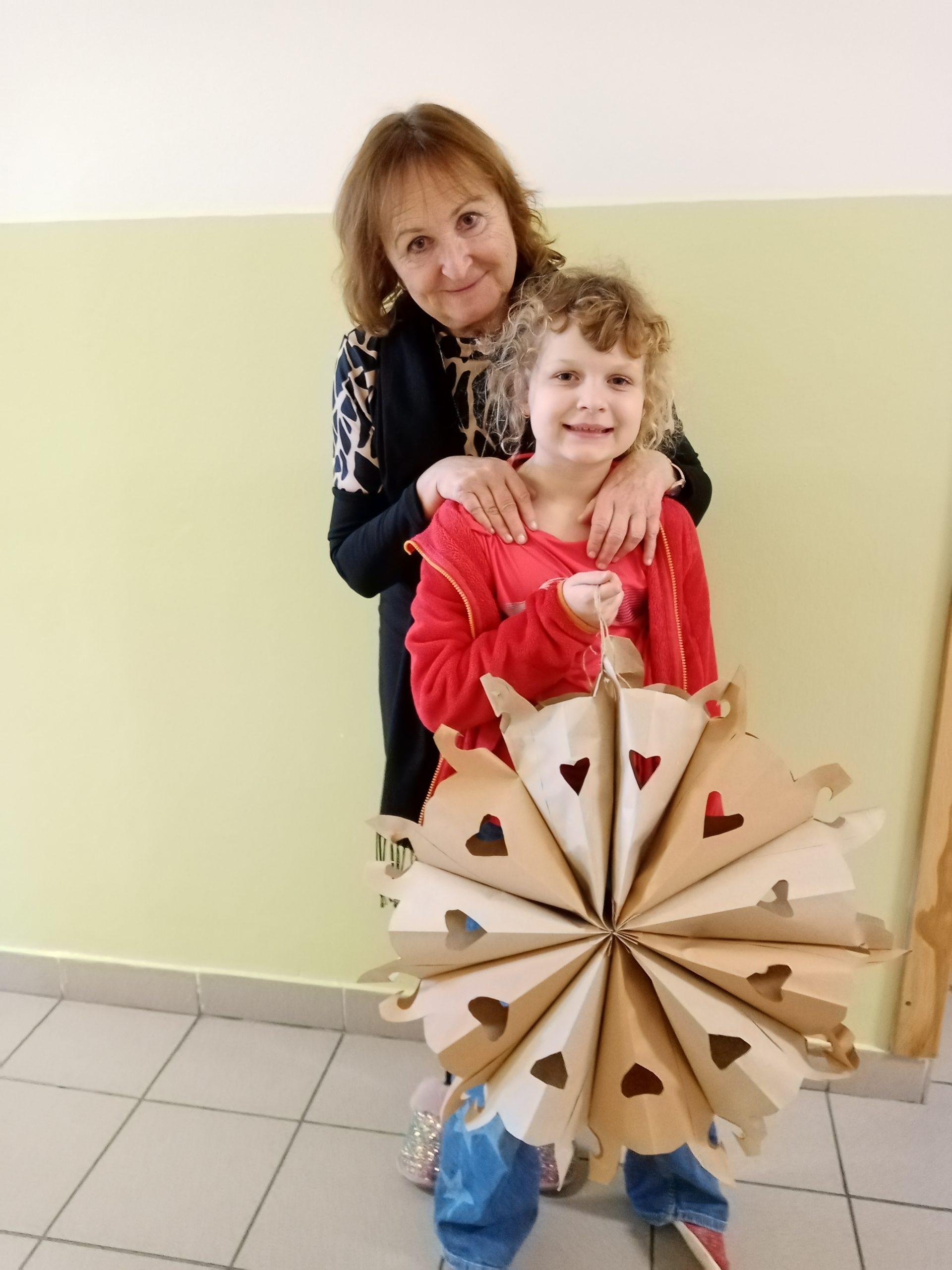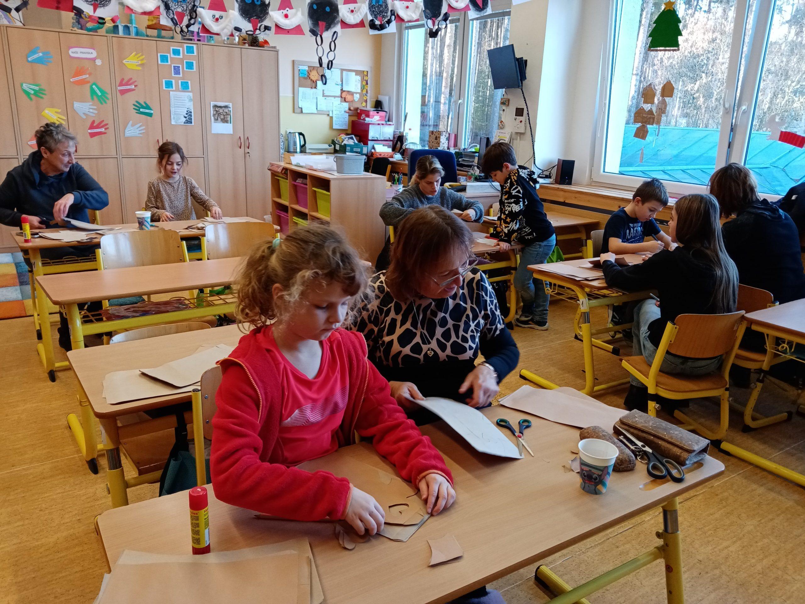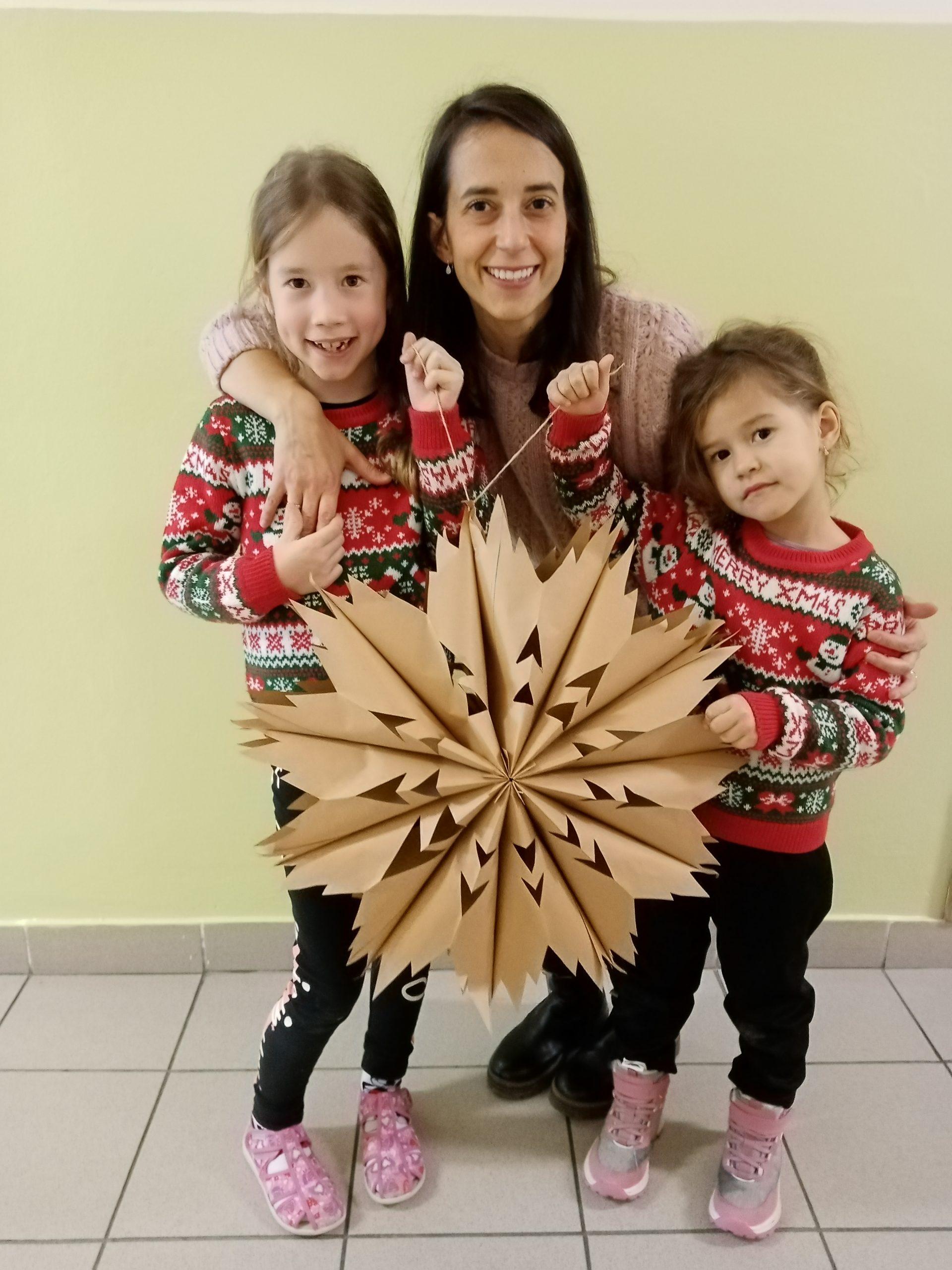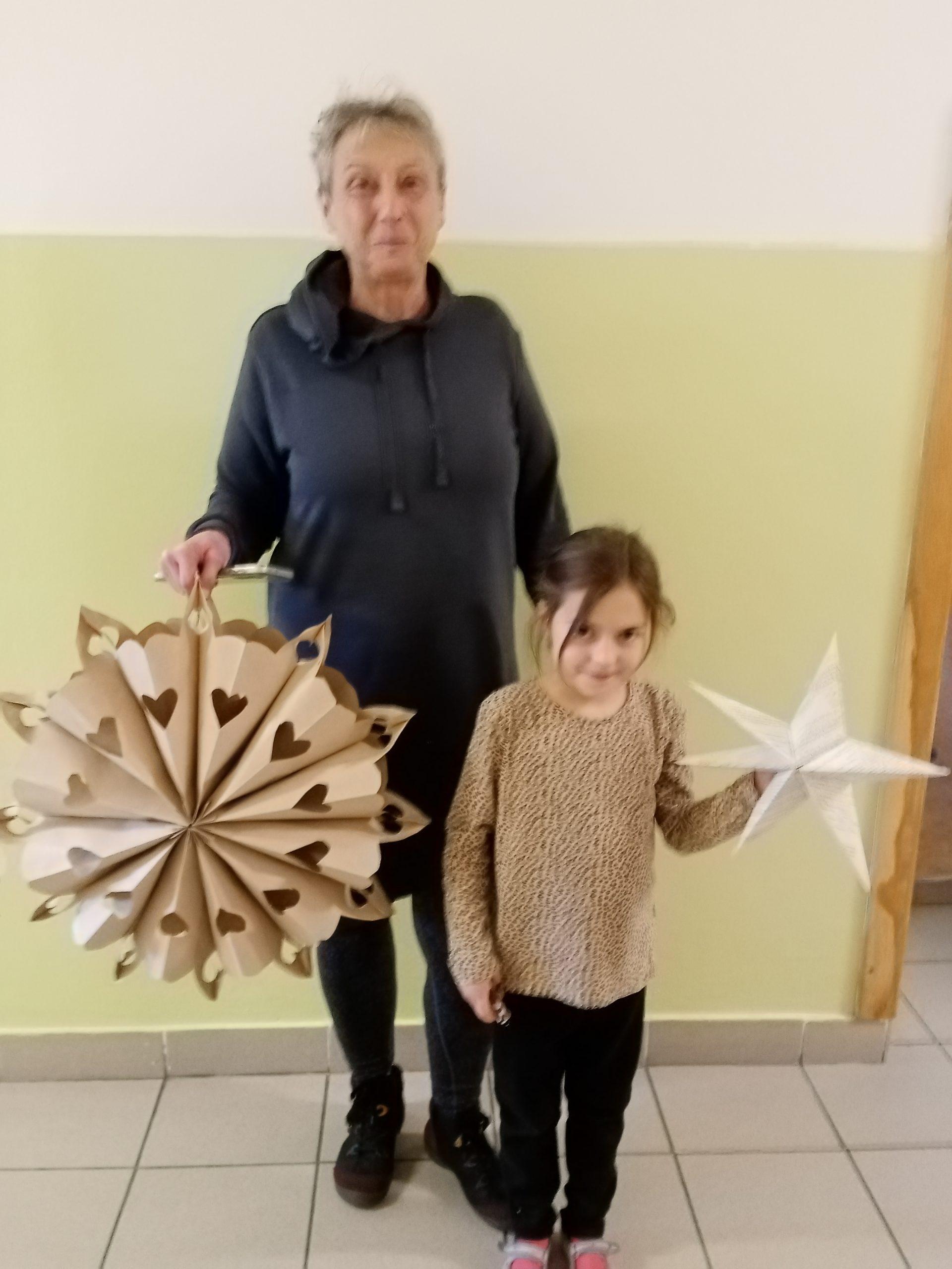 Děti společně se svými rodiči pilně stříhaly, skládaly a lepily a pod jejich šikovnýma rukama vznikaly nádherné vánoční hvězdy z papírových sáčků.