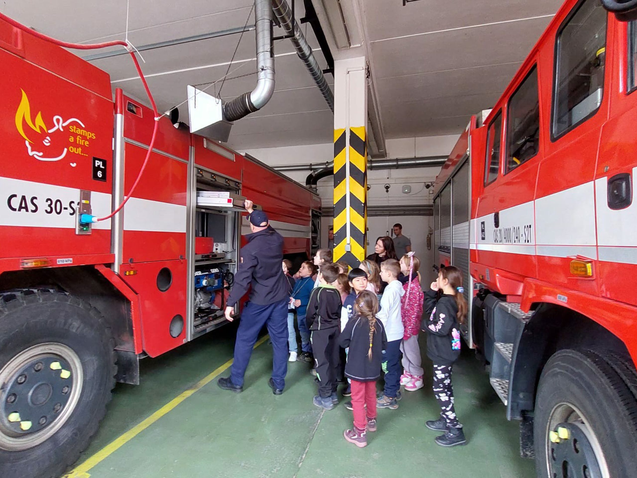 Před nedávnem se třídy 1. A a 1. B vydaly na exkurzi do Hasičské stanice v Plasích.  Uvnitř stanice si děti prohlédly veškeré hasičské vybavení, dozvěděly se základy protipožární ochrany, vyzkoušely si unést kyslíkové masky a na závěr se svezly v hasičském autě. Moc děkujeme hasičům HZS Plasy za naučnou a zábavnou prohlídku.