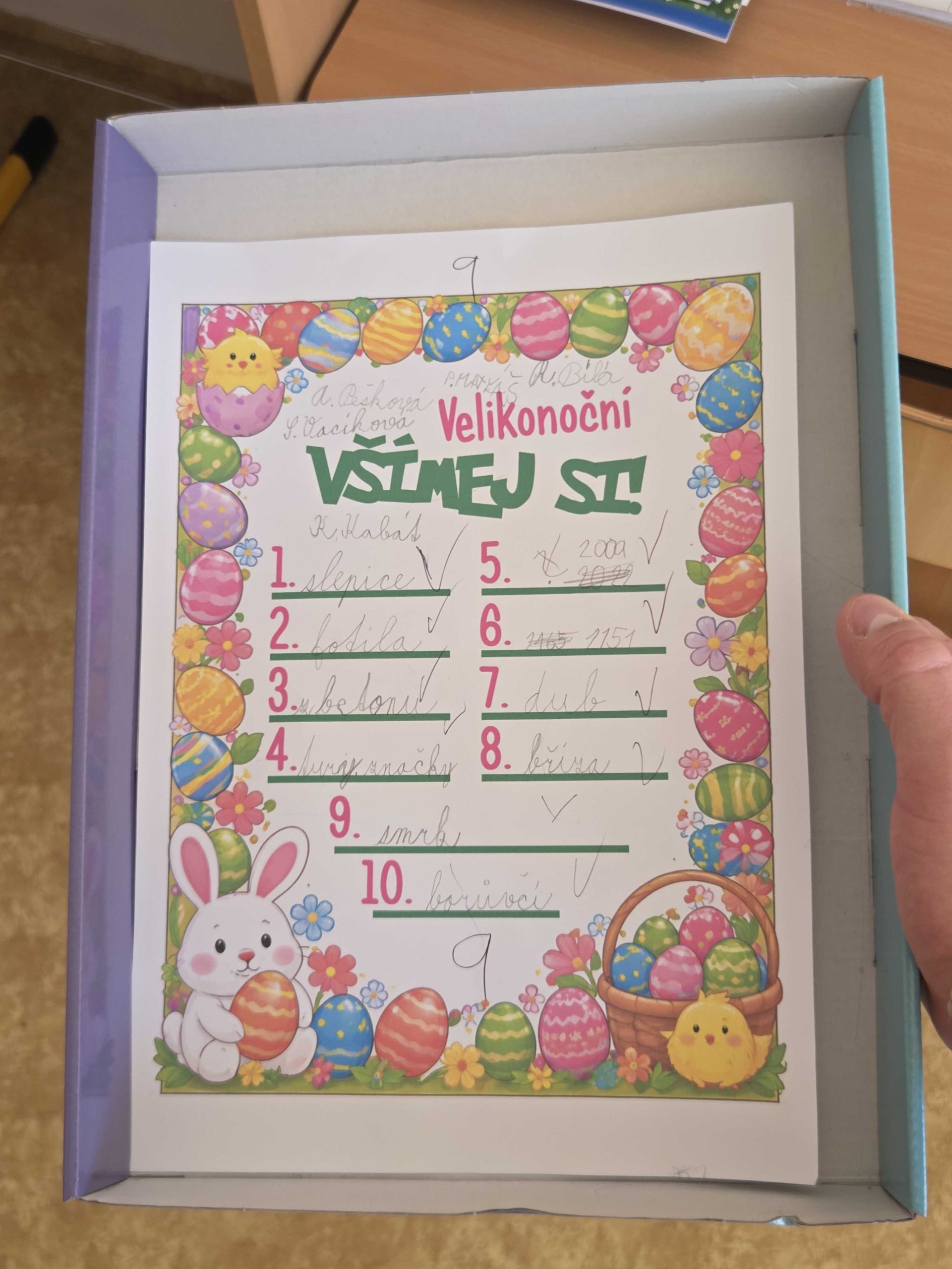 V úterý 7. 4. byl pro žáky druhých ročníků připraven „Velikonoční den“. Žáci se věnovali výtvarným aktivitám ve třídě, poté byla na řadě vycházka do nedalekého lomu. Po cestě dostávali žáci různé otázky, kvůli kterým museli „být stále ve střehu“, následoval vědomostní kvíz. No a aby to byly opravdové Velikonoce, vycházku žáci zakončili hledáním vajíček – úspěšnost hledání byla 97,8 %. Jedno vajíčko se sice najít nepodařilo, místo toho se však podařilo najít skutečného velikonočního zajíčka.