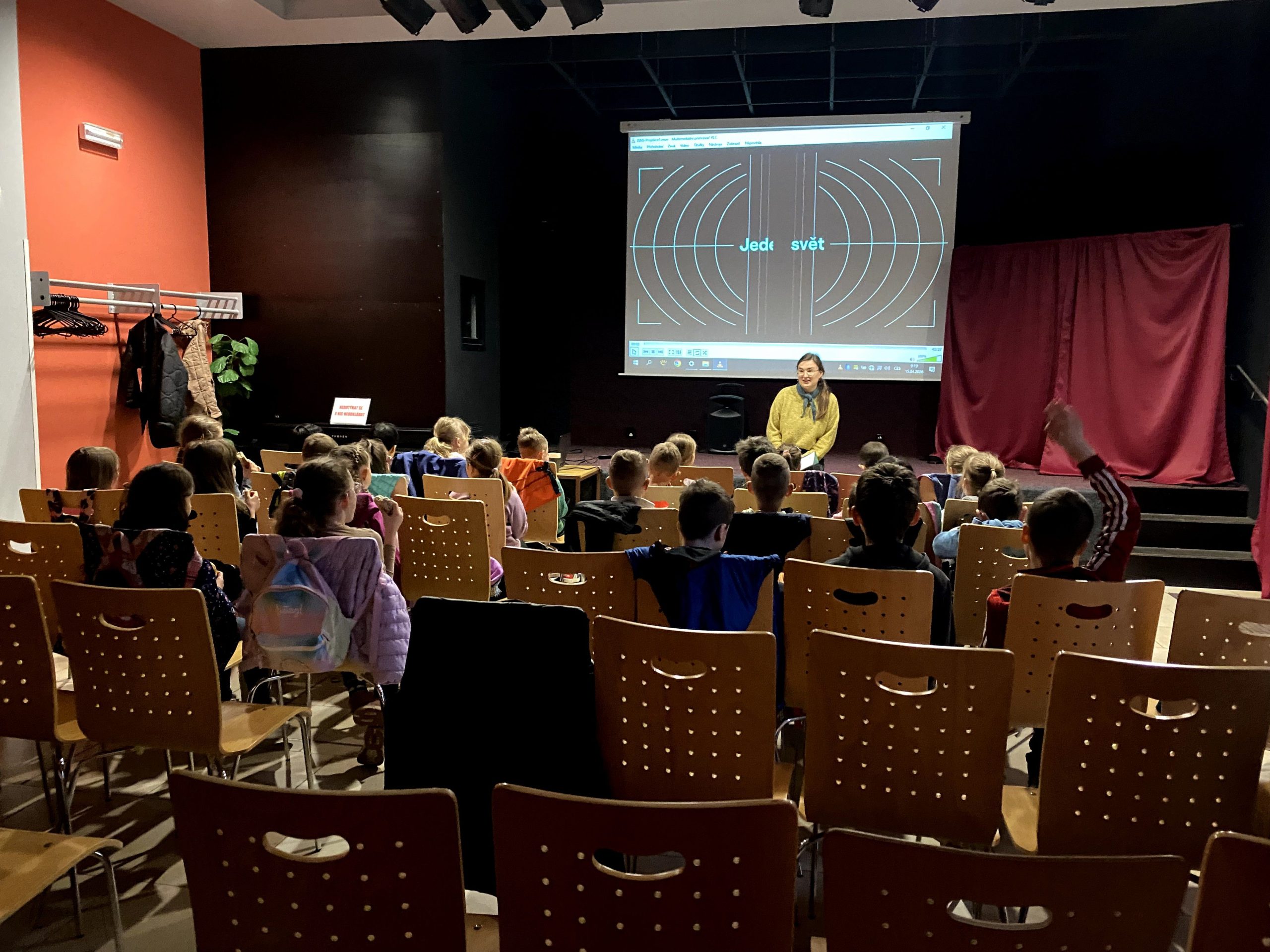 Před nedávnem se třídy 1.A a 1.B vydaly autobusem do Plzeň na festival dokumentárních filmů Jeden svět.